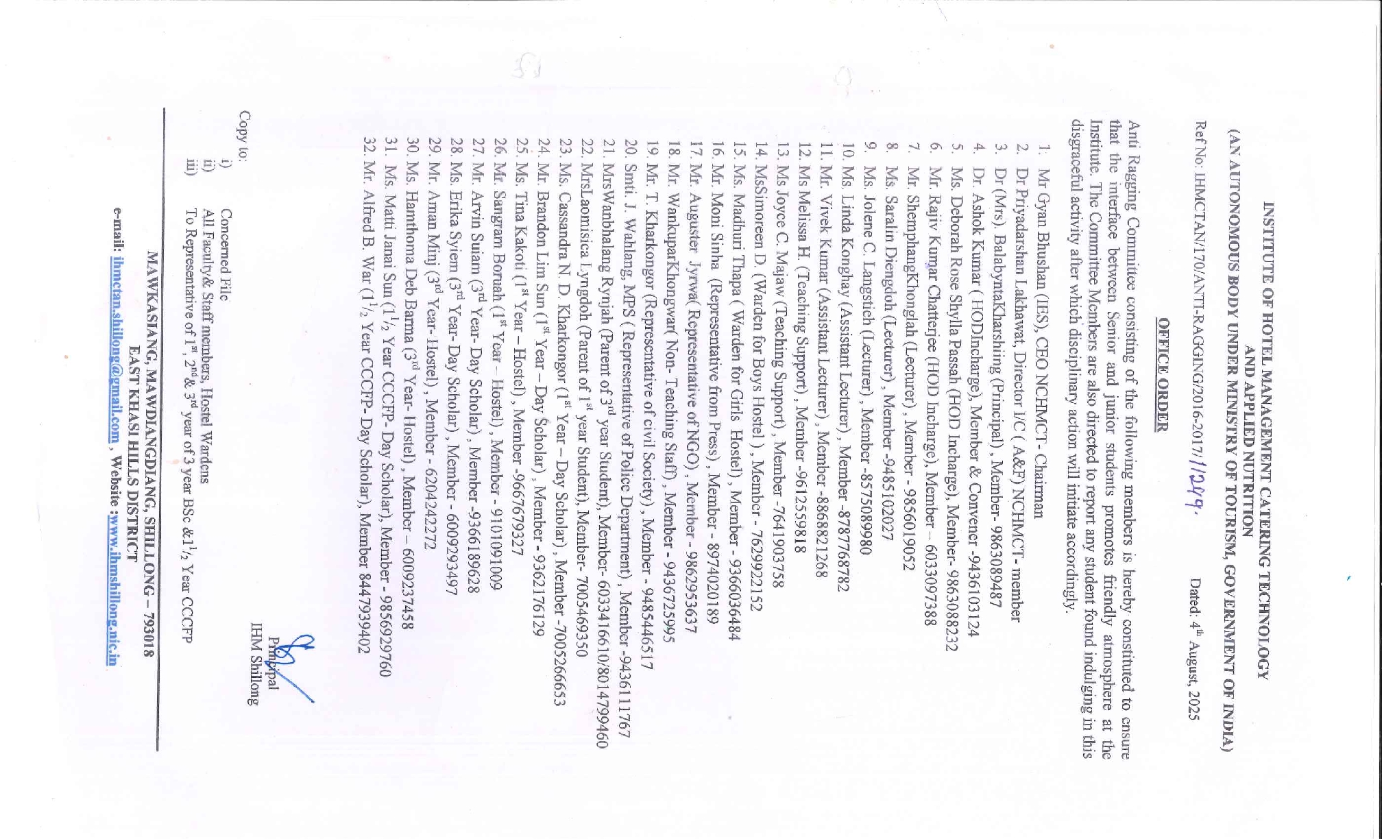 Office Order for Anti Ragging